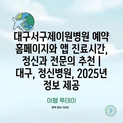 대구서구제이원병원 예약 홈페이지와 앱 진료시간, 정신과 전연락 추천 | 대구, 정신병원, 2025년 정보 제공 에 대해 자주 묻는 질문 TOP 5
