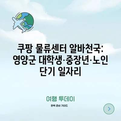 쿠팡 물류센터 알바천국: 영양군 대학생·중장년·노인 단기 일자리