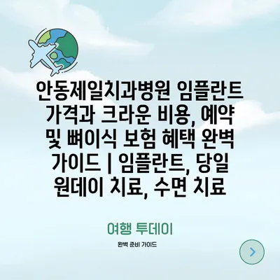 안동제일치과병원 임플란트 가격과 크라운 비용, 예약 및 뼈이식 보험 혜택 완벽 가이드 | 임플란트, 당일 원데이 치료, 수면 치료
