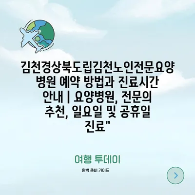 김천경상북도립김천노인전문요양병원 예약 방법과 진료시간 안내 | 요양병원, 전문의 추천, 일요일 및 공휴일 진료”