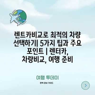 렌트카비교로 최적의 차량 선택하기| 5가지 팁과 주요 포인트 | 렌터카, 차량비교, 여행 준비
