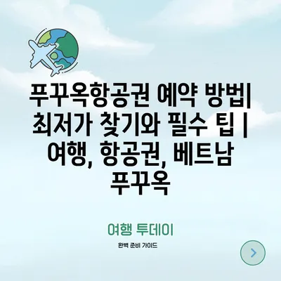 푸꾸옥항공권 예약 방법| 최저가 찾기와 필수 팁 | 여행, 항공권, 베트남 푸꾸옥