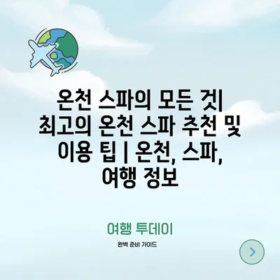 온천 스파의 모든 것| 최고의 온천 스파 추천 및 이용 팁 | 온천, 스파, 여행 정보