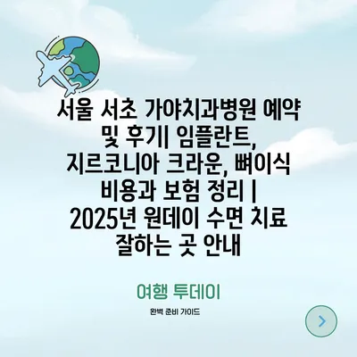 서울 서초 가야치과병원 예약 및 후기| 임플란트, 지르코니아 크라운, 뼈이식 비용과 보험 정리 | 2025년 원데이 수면 치료 잘하는 곳 안내
