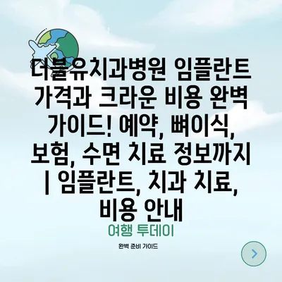 더블유치과병원 임플란트 가격과 크라운 비용 완벽 가이드! 예약, 뼈이식, 보험, 수면 치료 정보까지 | 임플란트, 치과 치료, 비용 안내