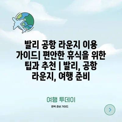발리 공항 라운지 이용 가이드| 편안한 휴식을 위한 팁과 추천 | 발리, 공항 라운지, 여행 준비
