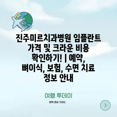 진주미르치과병원 임플란트 가격 및 크라운 비용 확인하기! | 예약, 뼈이식, 보험, 수면 치료 정보 안내