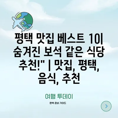 평택 맛집 베스트 10| 숨겨진 보석 같은 식당 추천!” | 맛집, 평택, 음식, 추천