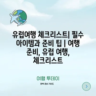 유럽여행 체크리스트| 필수 아이템과 준비 팁 | 여행 준비, 유럽 여행, 체크리스트