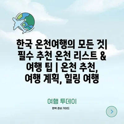 한국 온천여행의 모든 것| 필수 추천 온천 리스트 & 여행 팁 | 온천 추천, 여행 계획, 힐링 여행