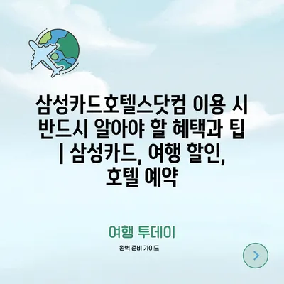 삼성카드호텔스닷컴 이용 시 반드시 알아야 할 혜택과 팁 | 삼성카드, 여행 할인, 호텔 예약