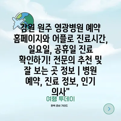 강원 원주 영광병원 예약 홈페이지와 어플로 진료시간, 일요일, 공휴일 진료 확인하기! 전문의 추천 및 잘 보는 곳 정보 | 병원 예약, 진료 정보, 인기 의사”
